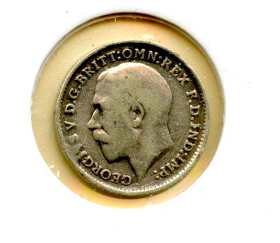 UK George V Three Pence Coin Dated 1912