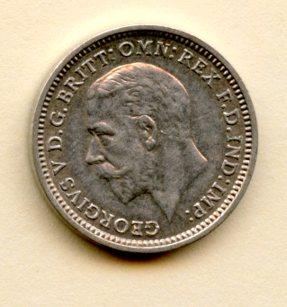UK George V Three Pence Coin Dated 1934