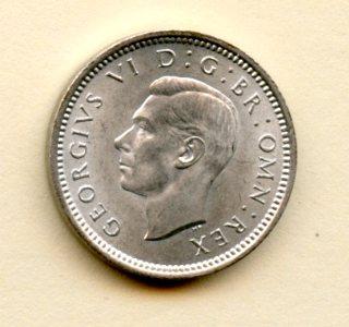 UK George VI Three Pence Coin Dated 1939