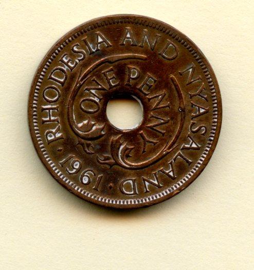 Rhodesia Nyasaland 1 Penny Coin Dated 1961
