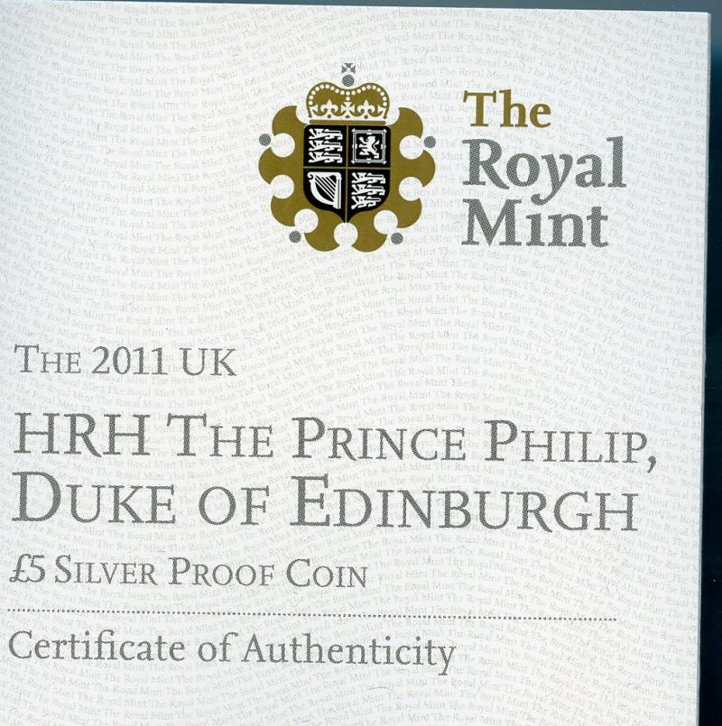UK 2011 Prince Phillips 90th Birthday Silver Proof £5 Five Pound Crown Coin In Royal Mint Case of Issue with certificate