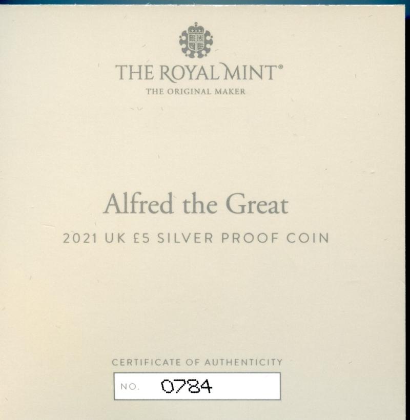 UK 2021 Alfred The Great Silver Proof £5 Five Pound Crown Coin In Royal Mint Case of Issue with certificate