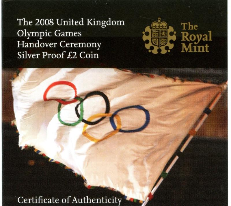 UK 2008 Olympic Games Handover Ceremony Silver Proof £2 Two Pound Coin In Royal Mint Box With Certificate