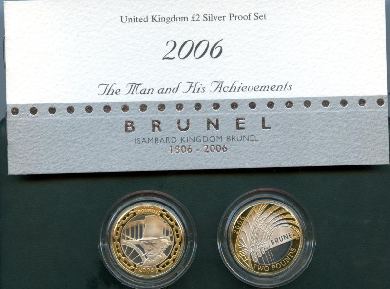 UK 2006 2 Coin Set Brunel His Achievements Brunel The Man Commemorative Silver Proof £2 Two Pound Coins