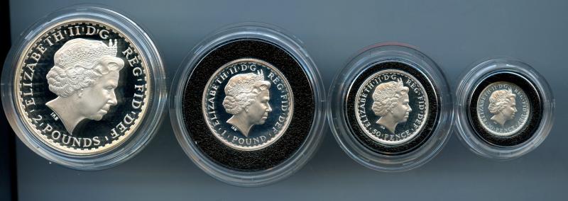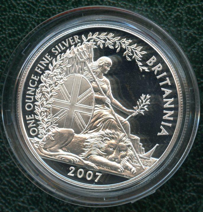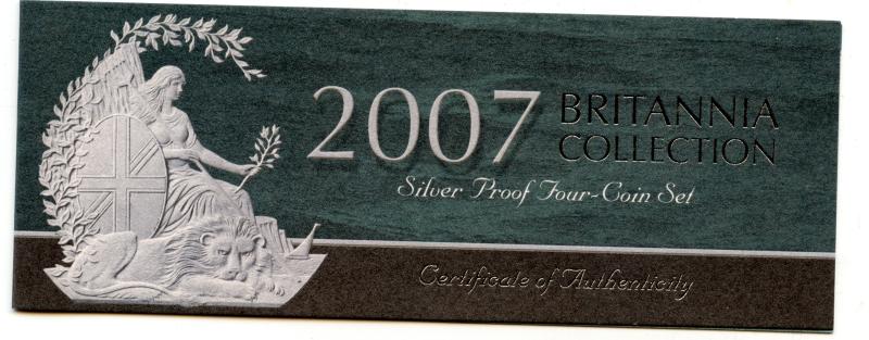 UK 2007 Silver Proof Britannia Coin Set 4 Coin Set 1 Ounce,1/2 Ounce, 1/4 Ounce, 1/10 Ounce in fitted Royal Mint Box of Issue with certificate