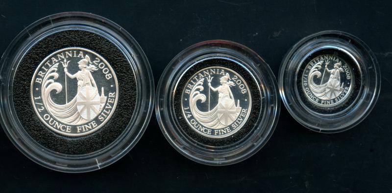 UK 2008 Silver Proof Britannia Coin Set 4 Coin Set 1 Ounce,1/2 Ounce, 1/4 Ounce, 1/10 Ounce in fitted Royal Mint Box of Issue with certificate