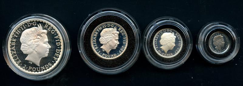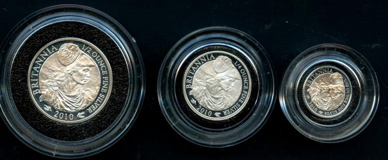 UK 2010 Silver Proof Britannia Coin Set 4 Coin Set 1 Ounce,1/2 Ounce, 1/4 Ounce, 1/10 Ounce in fitted Royal Mint Box of Issue with certificate