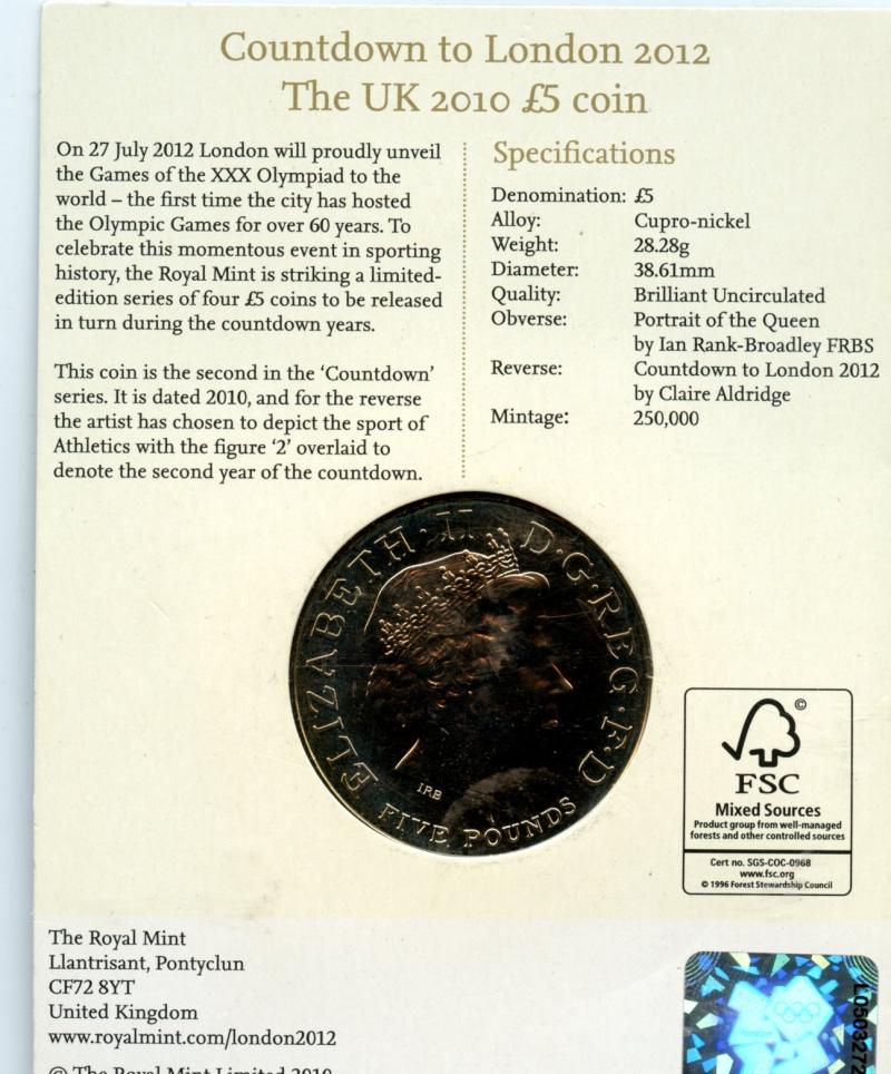UK 2010 Countdown to London 2012 Brilliant Uncirculated £5 Coin In Royal Mint pack of Issue