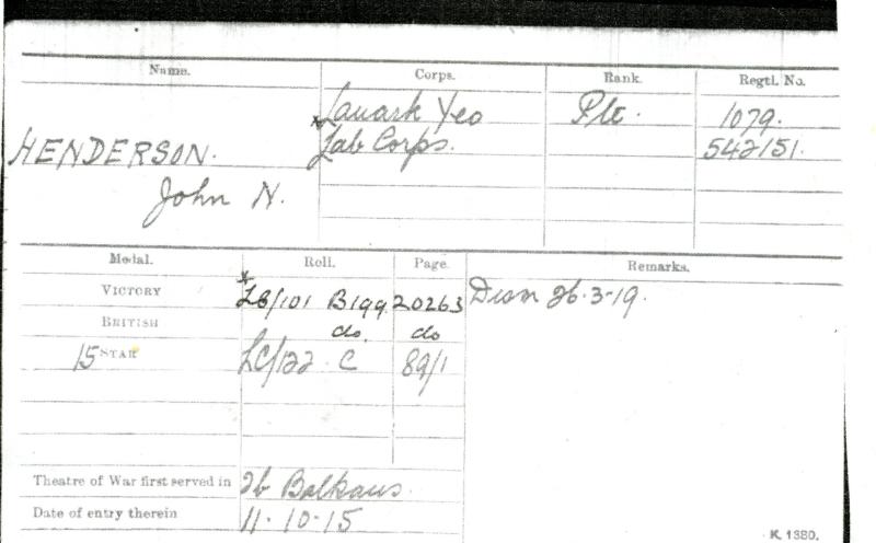 1079 Pte J Henderson, Lanark Yeo
